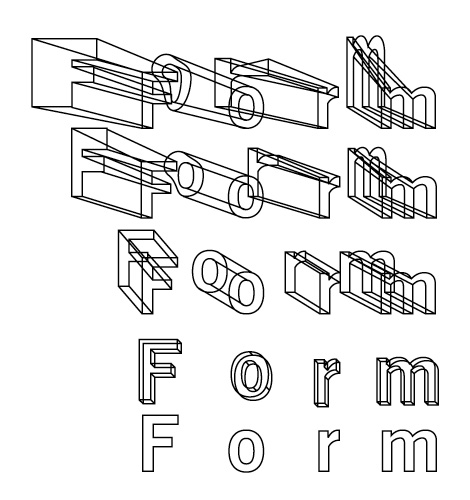 And here is another iteration applied to the full title. As you can see, the distorting effect of the non-parallel planes on the letterforms is even more exaggerated here:
