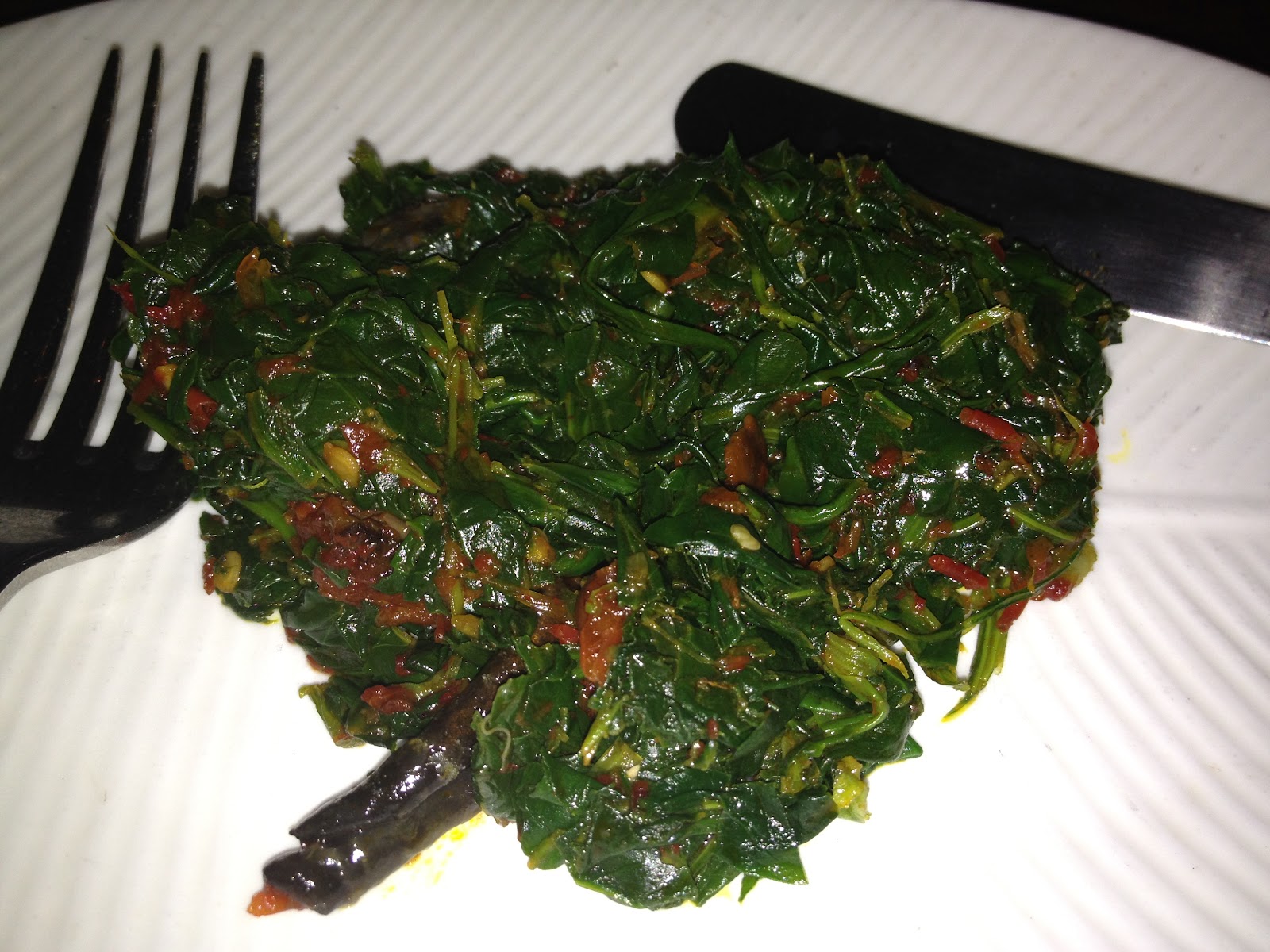 Heat oil in pot and sauté onion for 5 minutes. Chop all vegetables. Add all vegetables other than spinach and cook uncovered for 15 minutes. Salt to taste and add smoked fish, cook for another 5 minutes, then add spinach. Cook for another 6 minutes, and stir from time to time so that it doesn't stick to the pan. Enjoy a beautiful plate of EFO.