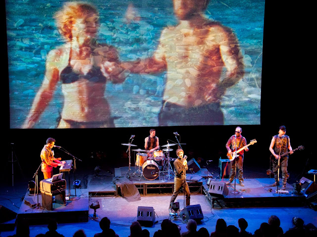Take, for example, Helen Lawrence: a noir drama is performed live before a green screen. It’s mixed with visuals and produced in real time; the audience also sees the edited film, viewing process and result simultaneously. Another show that garners the tag live filmmaking, in addition to music/film〰puppetry, is Nufonia Must Fall (Kid Koala, The Afiara Quartet, KK Barrett). This live puppet rendition of a graphic novel is filmed, scored, and viewed in the moment, its immediacy lending a tightrope walker’s daring. And speaking of puppets, Hagoromo (dance/music〰opera〰puppetry) features paradigm-breaking ballerina Wendy Whelan interacting with a Wendy puppet and a Wendy singer (choreographed by David Neumann, directed by David Michalek, with music by Nathan Davis/ICE). Epiphany: A Cycle of Life tosses chorals, projections, and an art installation into an aromatic experiential mix.