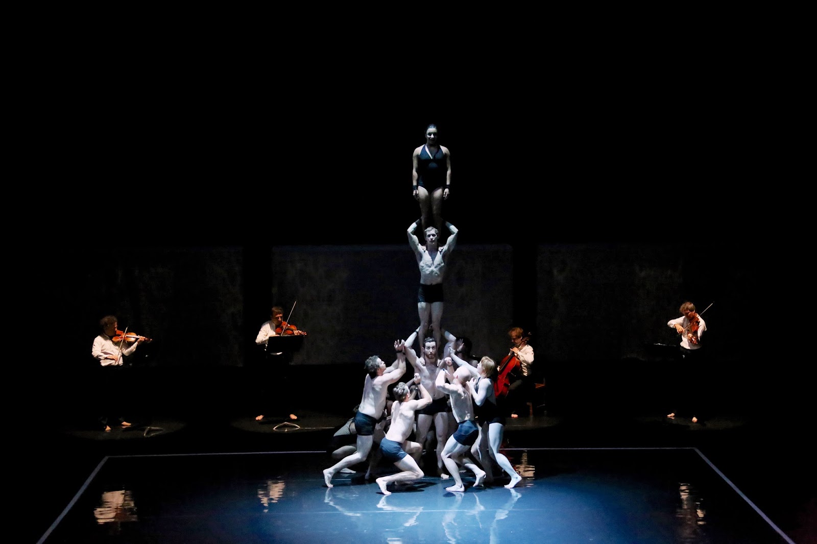 We had about three weeks of development with the quartet spread out over a year or so; before that, we had a six-week block with them in Lyon where the show premiered in 2013. They would play the music; we would try things, see what worked, what didn't, and basically built the show from there. The music says a lot, so we have tried to physicalize the music.