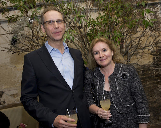 | Therese Esperdy, one of the gala chairs, with a guest during cocktails. |